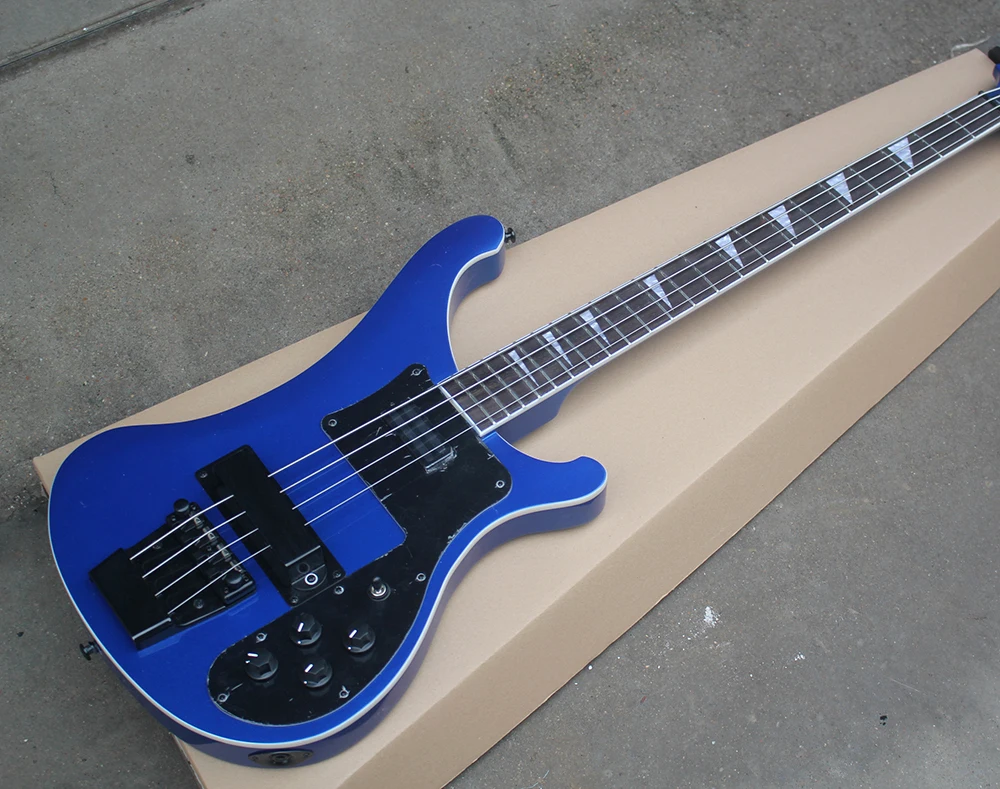 .Pictures of Factory Custom Blue Electric Bass Guitar with 4 Strings,White Binding,Rosewood Fingerboard,Black Hardwares,Offer Customized